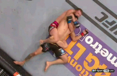 19. Los dos tratan de ponerse arriba y acaba viéndose un poco como una muy mala pelea de la UFC.